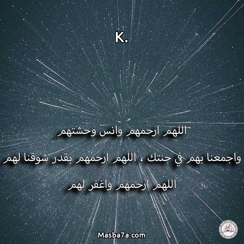 اللهم ارحم ( K. ) وانس وحشتهم واجمعنا بهم في جنتك ، اللهم ارحمهم بقدر شوقنا لهم اللهم ارحمهم واغفر لهم.
