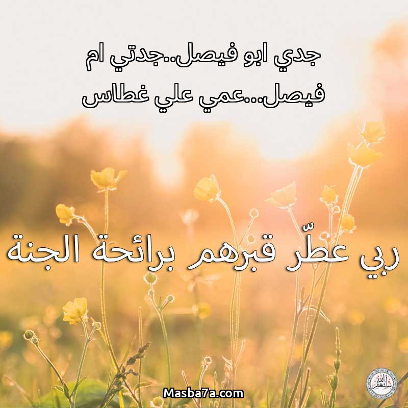 اللهم ارحم ( جدي ابو فيصل..جدتي ام فيصل...عمي علي غطاس ) وانس وحشتهم واجمعنا بهم في جنتك ، اللهم ارحمهم بقدر شوقنا لهم اللهم ارحمهم واغفر لهم.
