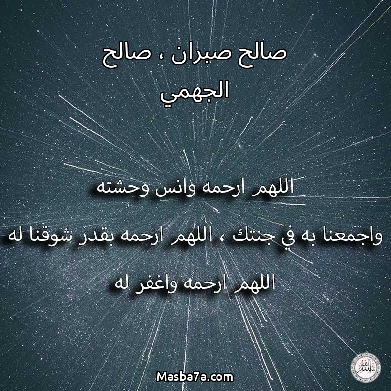 اللهم ارحم ( صالح صبران ، صالح الجهمي ) وانس وحشته واجمعنا به في جنتك ، اللهم ارحمه بقدر شوقنا له اللهم ارحمه واغفر له .