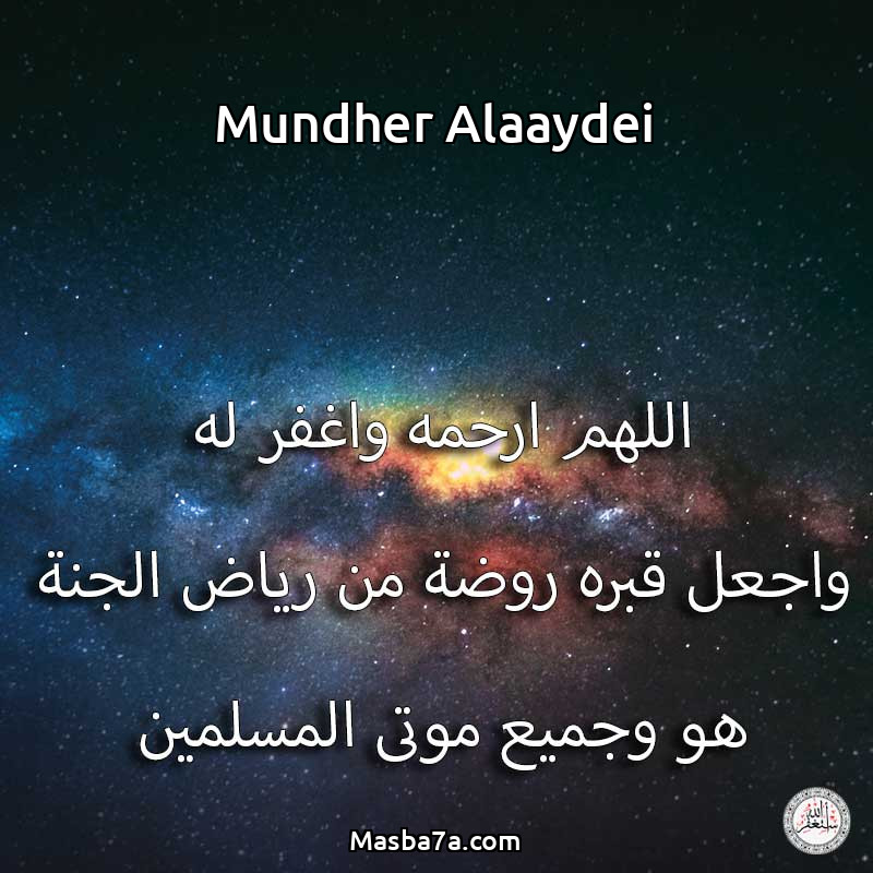 اللهم ارحم ( Mundher Alaaydei ) وانس وحشته واجمعنا به في جنتك ، اللهم ارحمه بقدر شوقنا له اللهم ارحمه واغفر له .