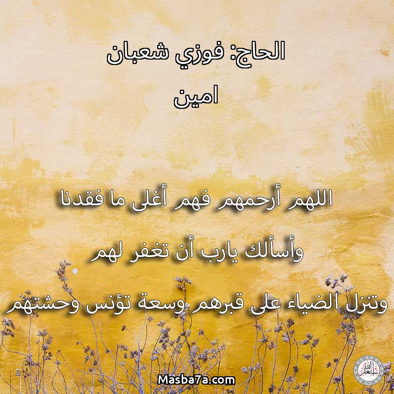 اللهم ارحم ( الحاج: فوزي شعبان امين / السيده طه / اماني فوزي شعبان ) وانس وحشتهم واجمعنا بهم في جنتك ، اللهم ارحمهم بقدر شوقنا لهم اللهم ارحمهم واغفر لهم.