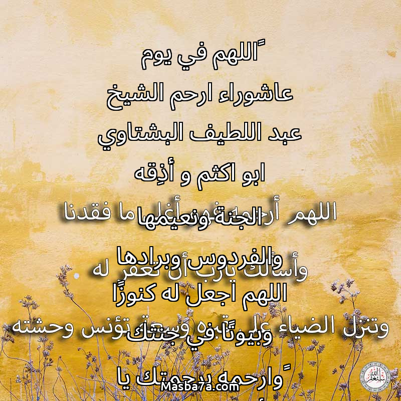 دعاء عن روح المرحوم ‎اللهم في يوم عاشوراء ارحم الشيخ عبد اللطيف البشتاوي ابو اكثم و أذِقه الجنة ونعيمها والفردوس وبرادها اللهم اجعل له كنوزًا وبيوتًا في جنتك ‎وارحمه برحمتك يا أرحم الراحمين