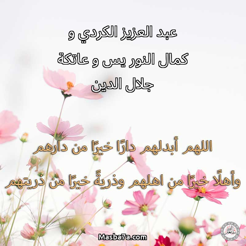 اللهم ارحم ( عبد العزيز الكردي و كمال النور يس و عاتكة جلال الدين ) وانس وحشتهم واجمعنا بهم في جنتك ، اللهم ارحمهم بقدر شوقنا لهم اللهم ارحمهم واغفر لهم.