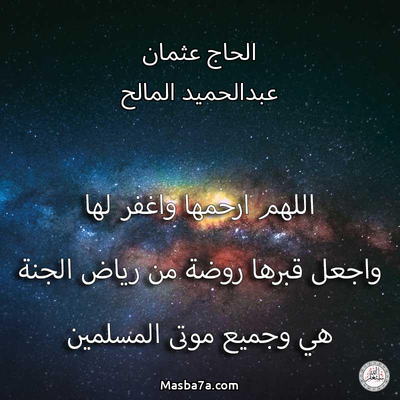 اللهم ارحم ( الحاج عثمان عبدالحميد المالح ) وانس وحشتها واجمعنا بها في جنتك ، اللهم ارحمها بقدر شوقنا لها اللهم ارحمها واغفر لها .