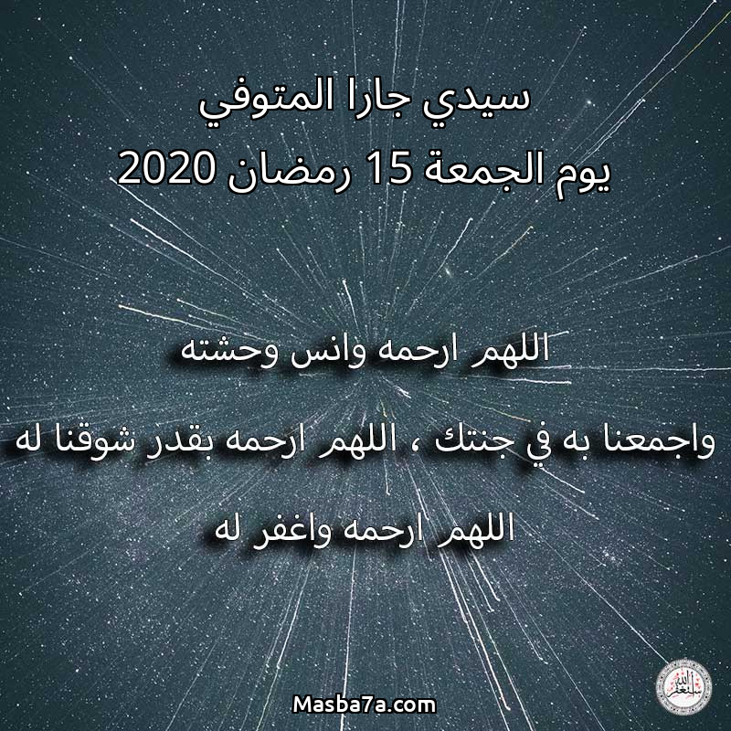 اللهم ارحم ( سيدي جارا المتوفي يوم الجمعة 15 رمضان 2020 ) وانس وحشته واجمعنا به في جنتك ، اللهم ارحمه بقدر شوقنا له اللهم ارحمه واغفر له .