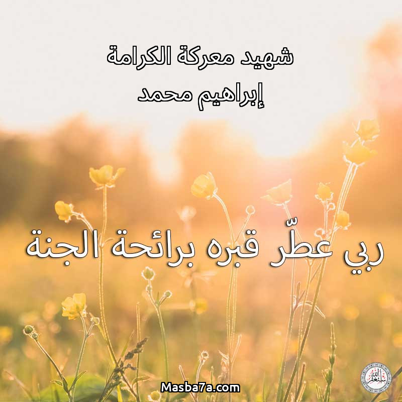 اللهم ارحم ( شهيد معركة الكرامة إبراهيم محمد ) وانس وحشته واجمعنا به في جنتك ، اللهم ارحمه بقدر شوقنا له اللهم ارحمه واغفر له .
