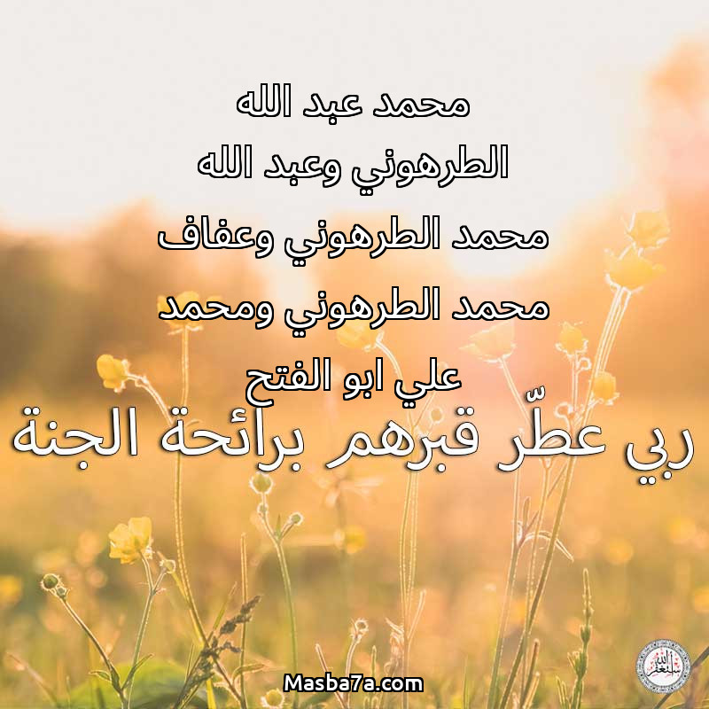 دعاء عن أرواح المرحومين محمد عبد الله الطرهوني وعبد الله محمد الطرهوني وعفاف محمد الطرهوني ومحمد علي ابو الفتح