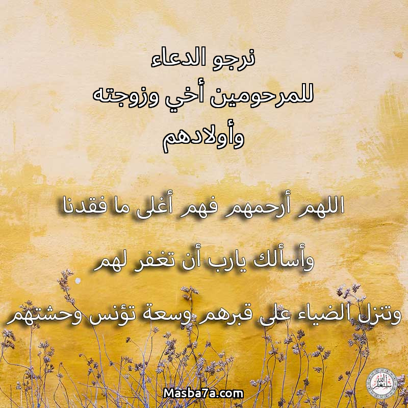 نرجو الدعاء للمرحومين أخي وزوجته وأولادهم