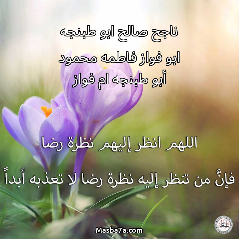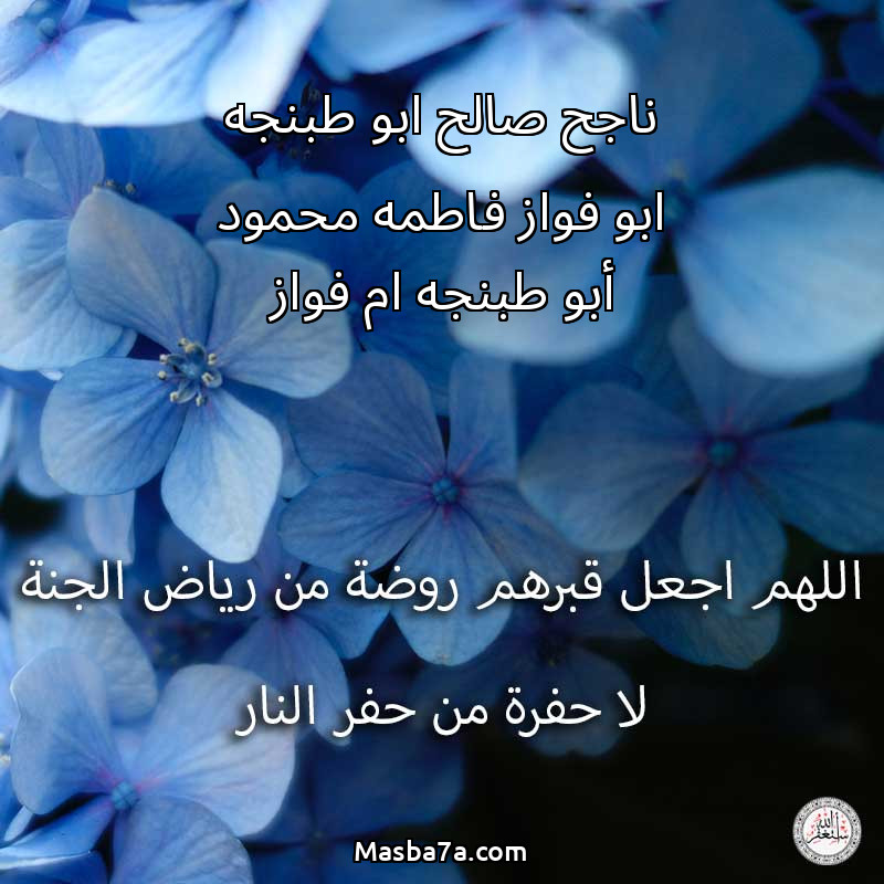 اللهم ارحم ( ناجح صالح ابو طبنجه ابو فواز فاطمه محمود أبو طبنجه ام فواز ) وانس وحشتهم واجمعنا بهم في جنتك ، اللهم ارحمهم بقدر شوقنا لهم اللهم ارحمهم واغفر لهم.