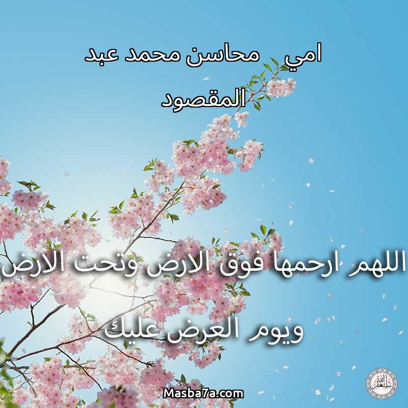 اللهم ارحم ( امي محاسن محمد عبد المقصود ) وانس وحشتها واجمعنا بها في جنتك ، اللهم ارحمها بقدر شوقنا لها اللهم ارحمها واغفر لها .