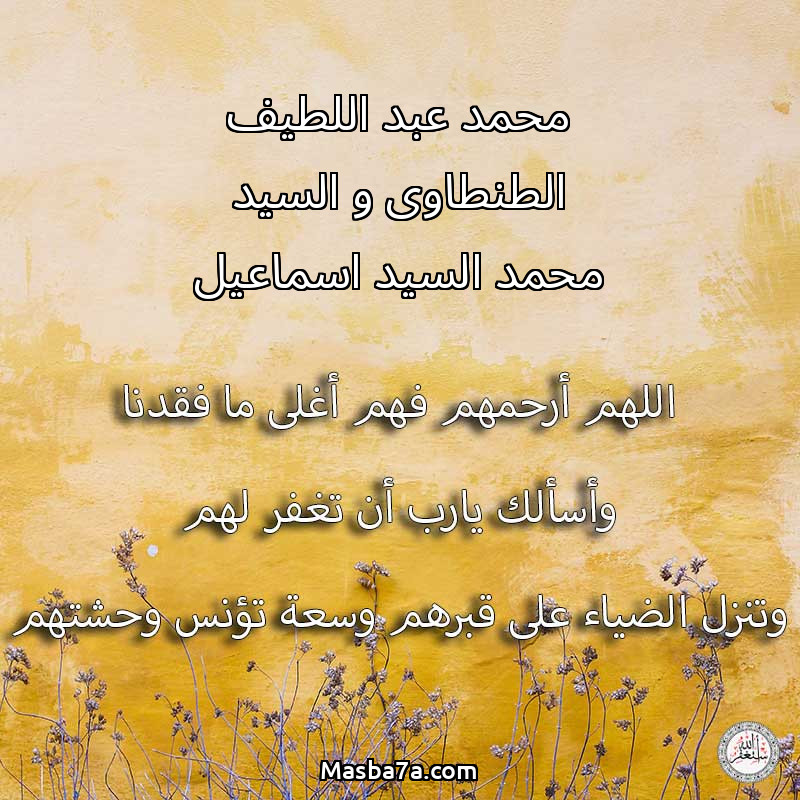 اللهم ارحم ( محمد عبد اللطيف الطنطاوى و السيد محمد السيد اسماعيل ) وانس وحشتهم واجمعنا بهم في جنتك ، اللهم ارحمهم بقدر شوقنا لهم اللهم ارحمهم واغفر لهم.