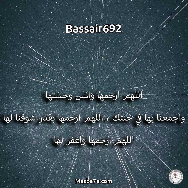 اللهم ارحم ( Bassair692 ) وانس وحشتها واجمعنا بها في جنتك ، اللهم ارحمها بقدر شوقنا لها اللهم ارحمها واغفر لها .