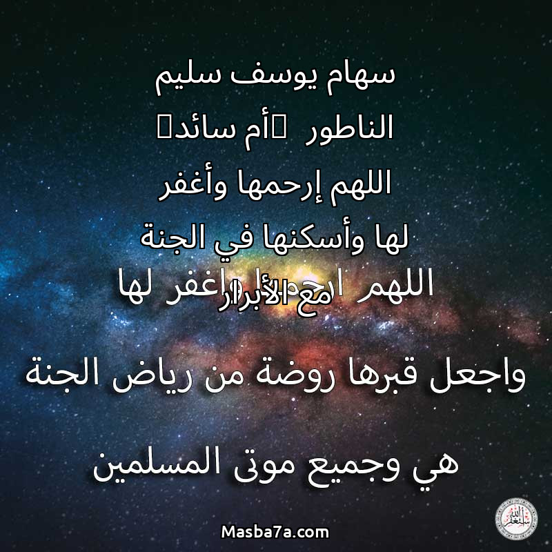 دعاء عن روح المرحومة سهام يوسف سليم الناطور (أم سائد) اللهم إرحمها وأغفر لها وأسكنها في الجنة مع الأبرار