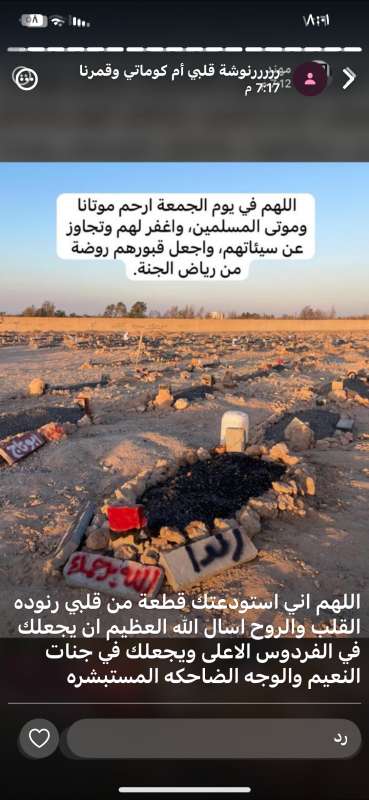 اللهم ارحم ( رندا فايز ) وانس وحشتها واجمعنا بها في جنتك ، اللهم ارحمها بقدر شوقنا لها اللهم ارحمها واغفر لها .