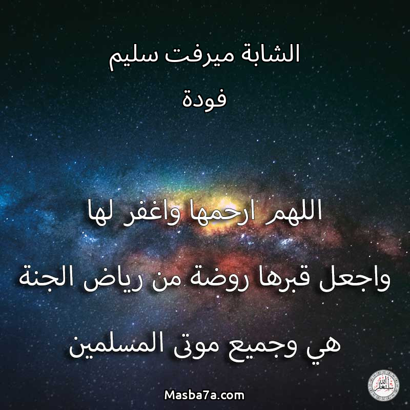 اللهم ارحم ( الشابة ميرفت سليم فودة ) وانس وحشتها واجمعنا بها في جنتك ، اللهم ارحمها بقدر شوقنا لها اللهم ارحمها واغفر لها .