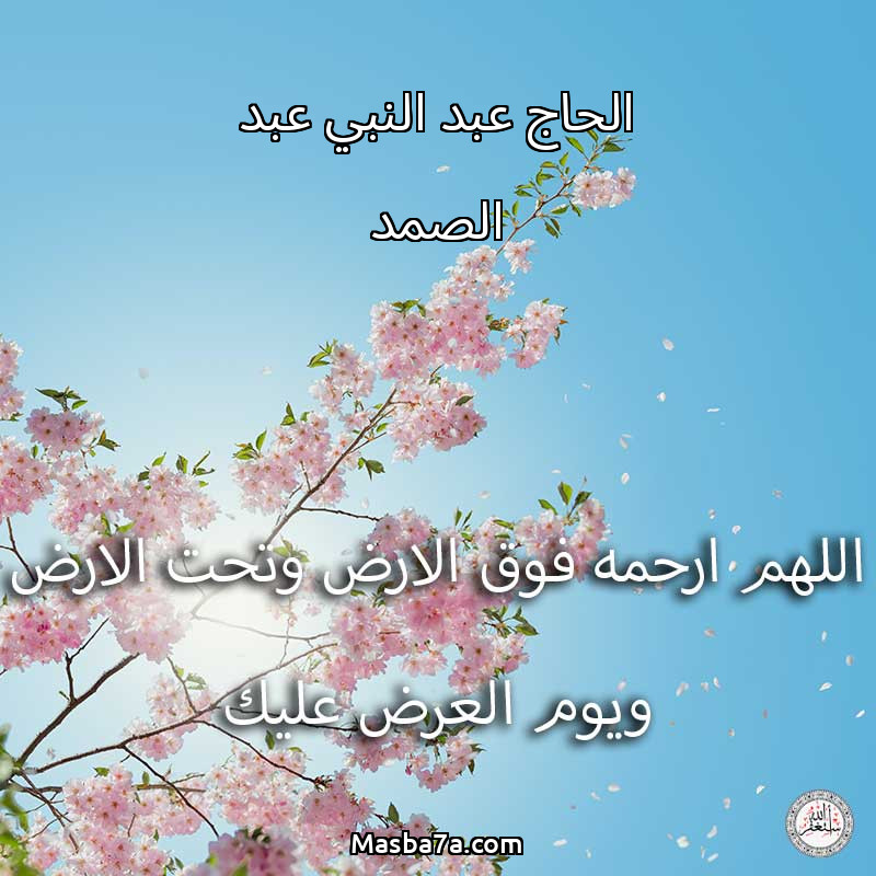 اللهم ارحم ( الحاج عبد النبي عبد الصمد ) وانس وحشته واجمعنا به في جنتك ، اللهم ارحمه بقدر شوقنا له اللهم ارحمه واغفر له .