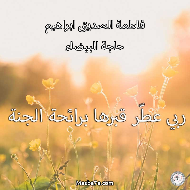اللهم ارحم ( فاطمة الصديق ابراهيم حاجة البيضاء ) وانس وحشتها واجمعنا بها في جنتك ، اللهم ارحمها بقدر شوقنا لها اللهم ارحمها واغفر لها .
