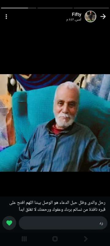 اللهم ارحم ( المرحوم خلف أبراهيم صادق ) وانس وحشته واجمعنا به في جنتك ، اللهم ارحمه بقدر شوقنا له اللهم ارحمه واغفر له .