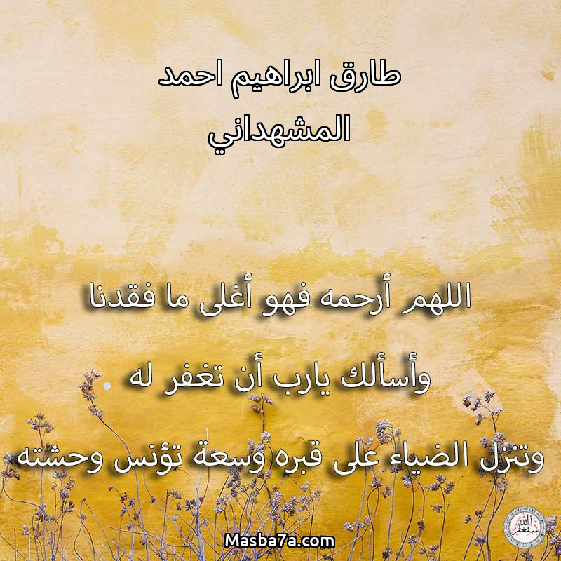 اللهم ارحم ( طارق ابراهيم احمد المشهداني ) وانس وحشته واجمعنا به في جنتك ، اللهم ارحمه بقدر شوقنا له اللهم ارحمه واغفر له .
