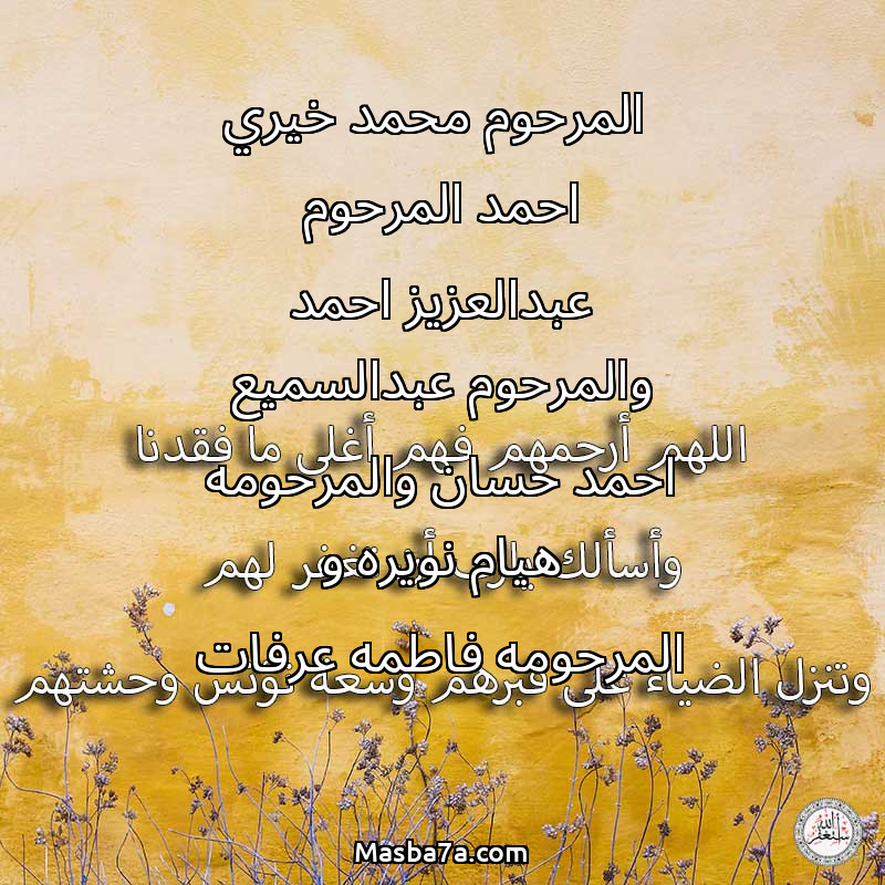 دعاء عن أرواح المرحومين المرحوم محمد خيري احمد المرحوم عبدالعزيز احمد والمرحوم عبدالسميع احمد حسان والمرحومه هيام نويره و المرحومه فاطمه عرفات
