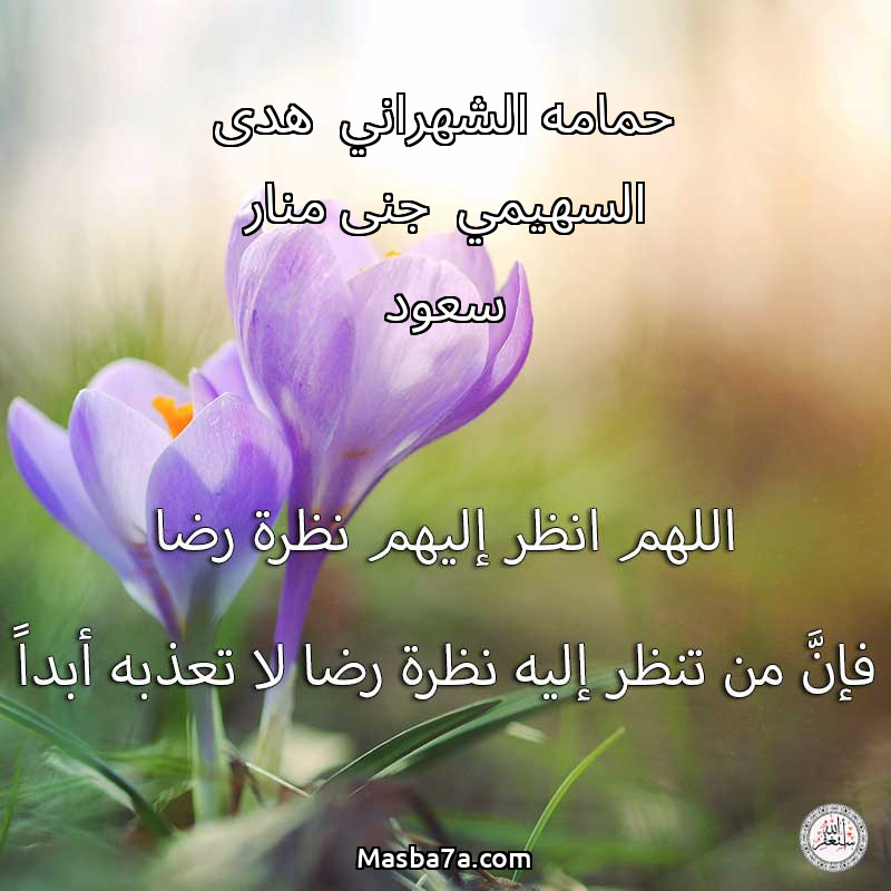 اللهم ارحم ( حمامه الشهراني -هدى السهيمي -جنى-منار-سعود ) وانس وحشتهم واجمعنا بهم في جنتك ، اللهم ارحمهم بقدر شوقنا لهم اللهم ارحمهم واغفر لهم.