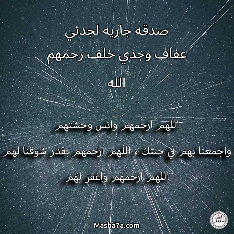 اللهم ارحم ( صدقه جاريه لجدتي عفاف وجدي خلف رحمهم الله ) وانس وحشتهم واجمعنا بهم في جنتك ، اللهم ارحمهم بقدر شوقنا لهم اللهم ارحمهم واغفر لهم.
