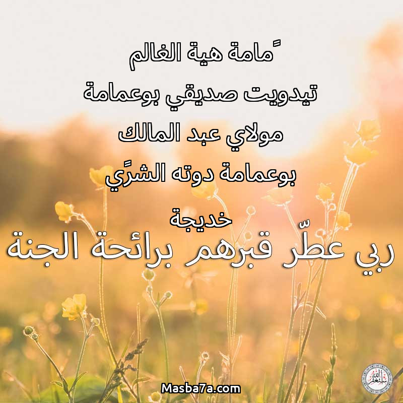 دعاء عن أرواح المرحومين ڨمامة هية الغالم تيدويت صديقي بوعمامة مولاي عبد المالك بوعمامة دوته الشرڨي خديجة