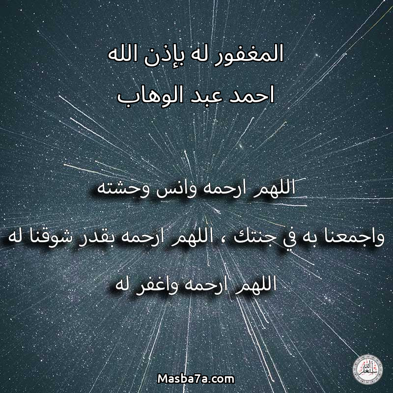 اللهم ارحم ( المغفور له بإذن الله احمد عبد الوهاب ) وانس وحشته واجمعنا به في جنتك ، اللهم ارحمه بقدر شوقنا له اللهم ارحمه واغفر له .