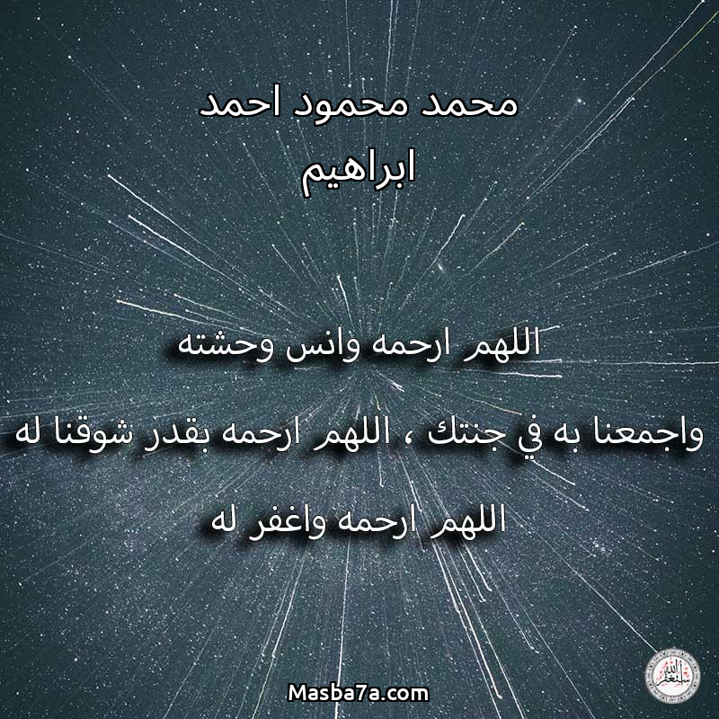 اللهم ارحم ( محمد محمود احمد ابراهيم ) وانس وحشته واجمعنا به في جنتك ، اللهم ارحمه بقدر شوقنا له اللهم ارحمه واغفر له .