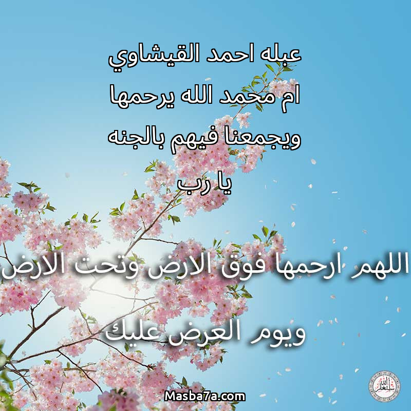 دعاء عن روح المرحومة عبله احمد القيشاوي ام محمد الله يرحمها ويجمعنا فيهم بالجنه يا رب