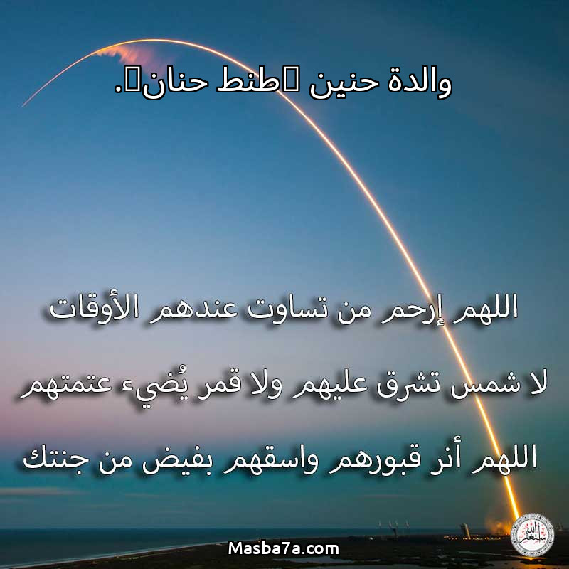 اللهم ارحم ( والدة حنين "طنط حنان". ) وانس وحشتها واجمعنا بها في جنتك ، اللهم ارحمها بقدر شوقنا لها اللهم ارحمها واغفر لها .