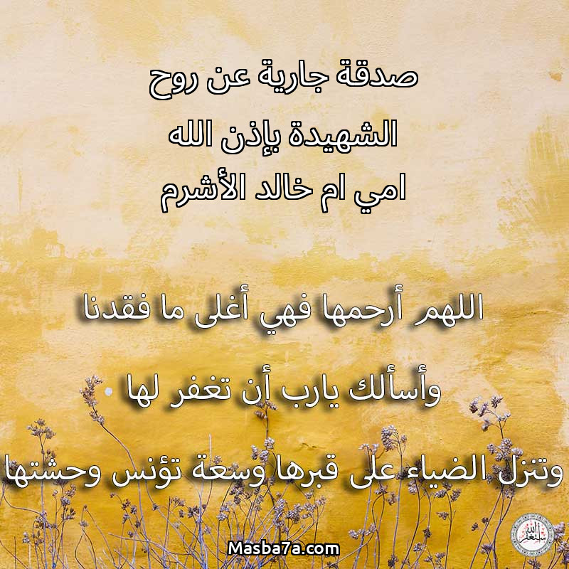 دعاء عن روح المرحومة صدقة جارية عن روح الشهيدة بإذن الله امي ام خالد الأشرم