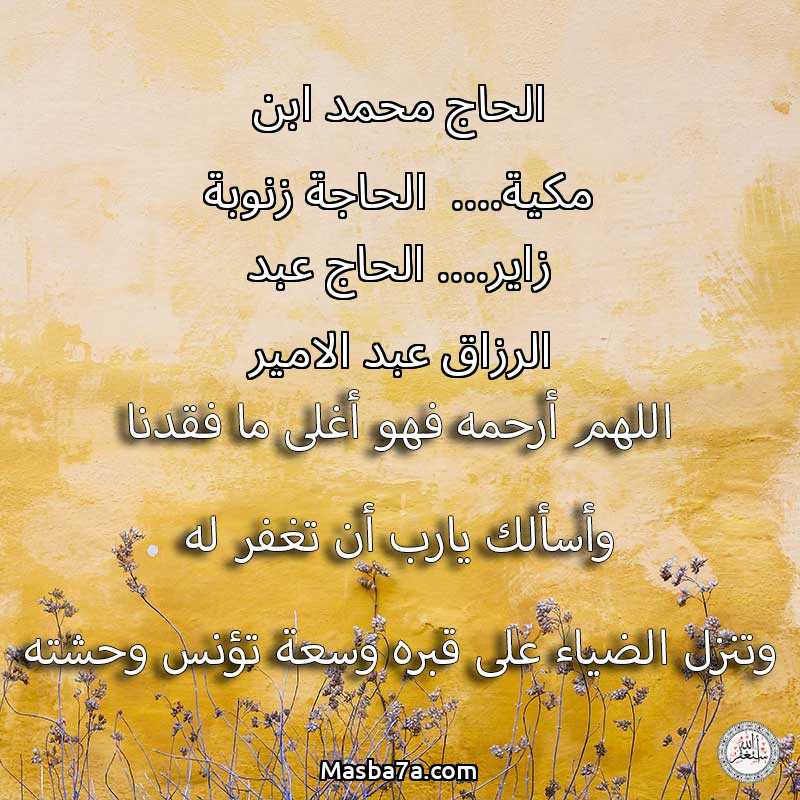 دعاء عن روح المرحوم الحاج محمد ابن مكية.... الحاجة زنوبة زاير.... الحاج عبد الرزاق عبد الامير
