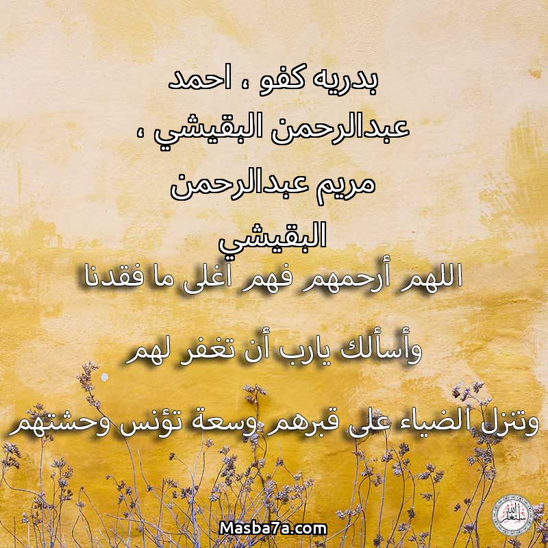 دعاء عن أرواح المرحومين بدريه كفو ، احمد عبدالرحمن البقيشي ، مريم عبدالرحمن البقيشي