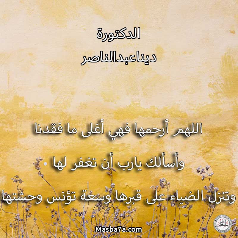 اللهم ارحم ( الدكتورة ديناعبدالناصر ) وانس وحشتها واجمعنا بها في جنتك ، اللهم ارحمها بقدر شوقنا لها اللهم ارحمها واغفر لها .