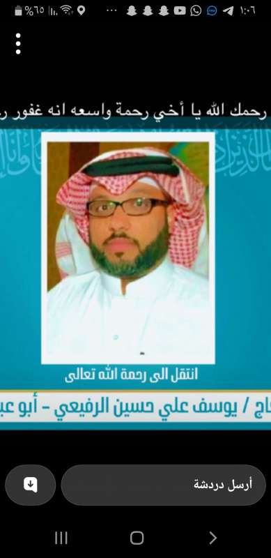 اللهم ارحم ( المرحوم يوسف الرفيعي ) وانس وحشته واجمعنا به في جنتك ، اللهم ارحمه بقدر شوقنا له اللهم ارحمه واغفر له .