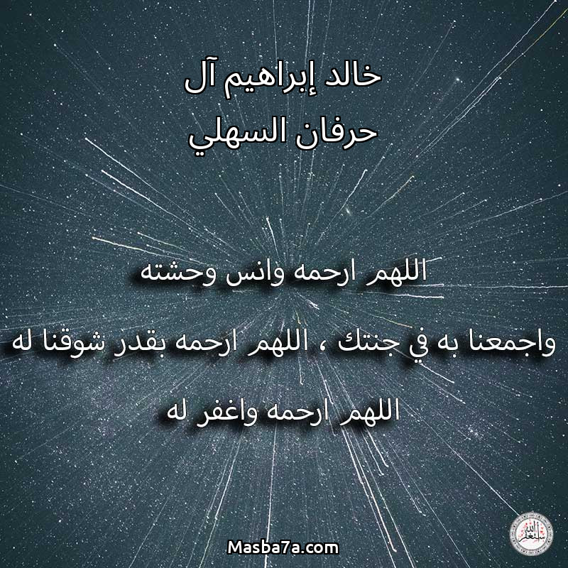 اللهم ارحم ( خالد إبراهيم آل حرفان السهلي ) وانس وحشته واجمعنا به في جنتك ، اللهم ارحمه بقدر شوقنا له اللهم ارحمه واغفر له .