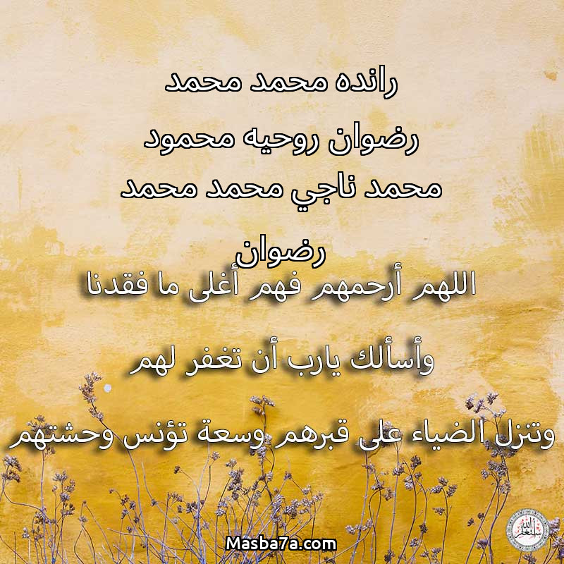 دعاء عن أرواح المرحومين رانده محمد محمد رضوان روحيه محمود محمد ناجي محمد محمد رضوان