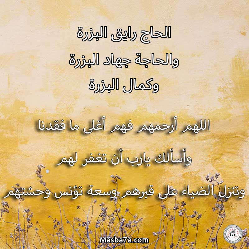 اللهم ارحم ( الحاج رايق البزرة والحاجة جهاد البزرة وكمال البزرة ) وانس وحشتهم واجمعنا بهم في جنتك ، اللهم ارحمهم بقدر شوقنا لهم اللهم ارحمهم واغفر لهم.