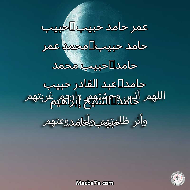 اللهم ارحم ( عمر حامد حبيب_حبيب حامد حبيب_محمد عمر حامد_حبيب محمد حامد_عبد القادر حبيب حامد_الشيخ إبراهيم حبيب حامد ) وانس وحشتهم واجمعنا بهم في جنتك ، اللهم ارحمهم بقدر شوقنا لهم اللهم ارحمهم واغفر لهم.