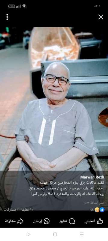 اللهم ارحم ( الحاج/ محمود محمد روق ) وانس وحشته واجمعنا به في جنتك ، اللهم ارحمه بقدر شوقنا له اللهم ارحمه واغفر له .