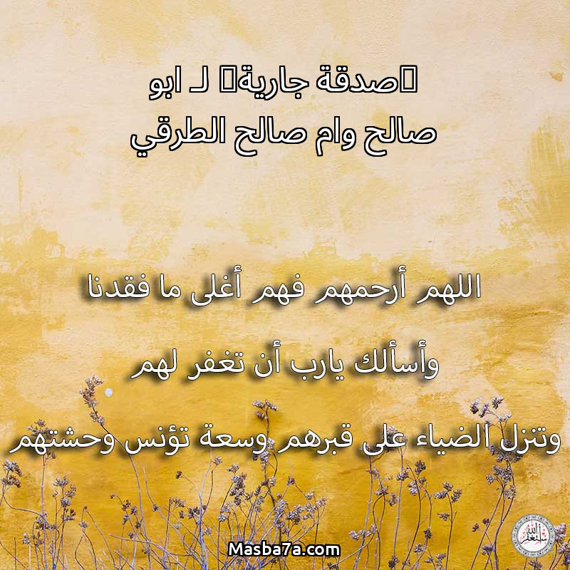 دعاء عن أرواح المرحومين [صدقة جارية] لـ ابو صالح وام صالح الطرقي