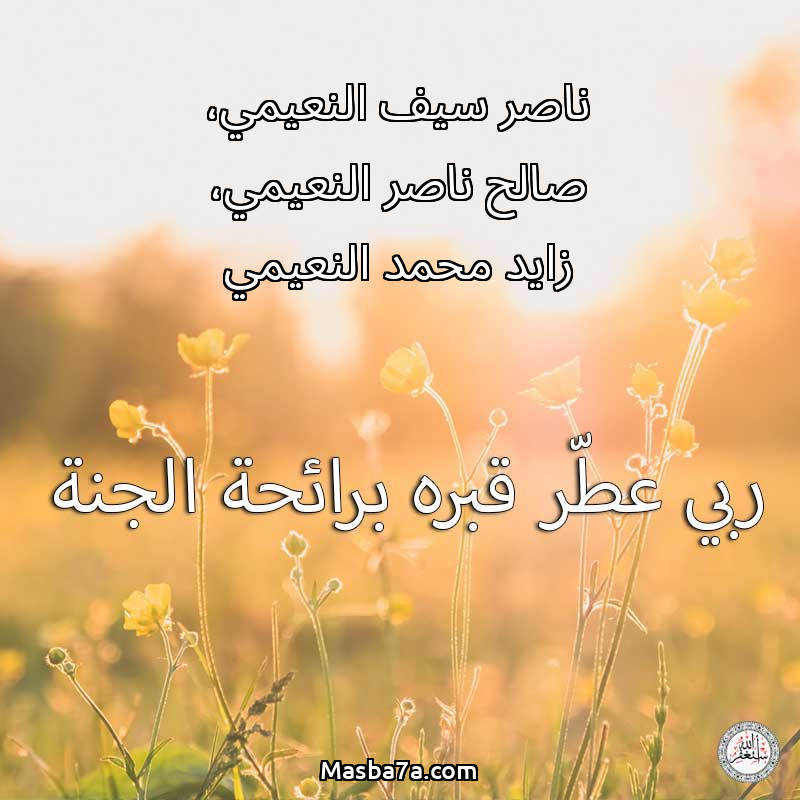 اللهم ارحم ( ناصر سيف النعيمي، صالح ناصر النعيمي، زايد محمد النعيمي ) وانس وحشته واجمعنا به في جنتك ، اللهم ارحمه بقدر شوقنا له اللهم ارحمه واغفر له .