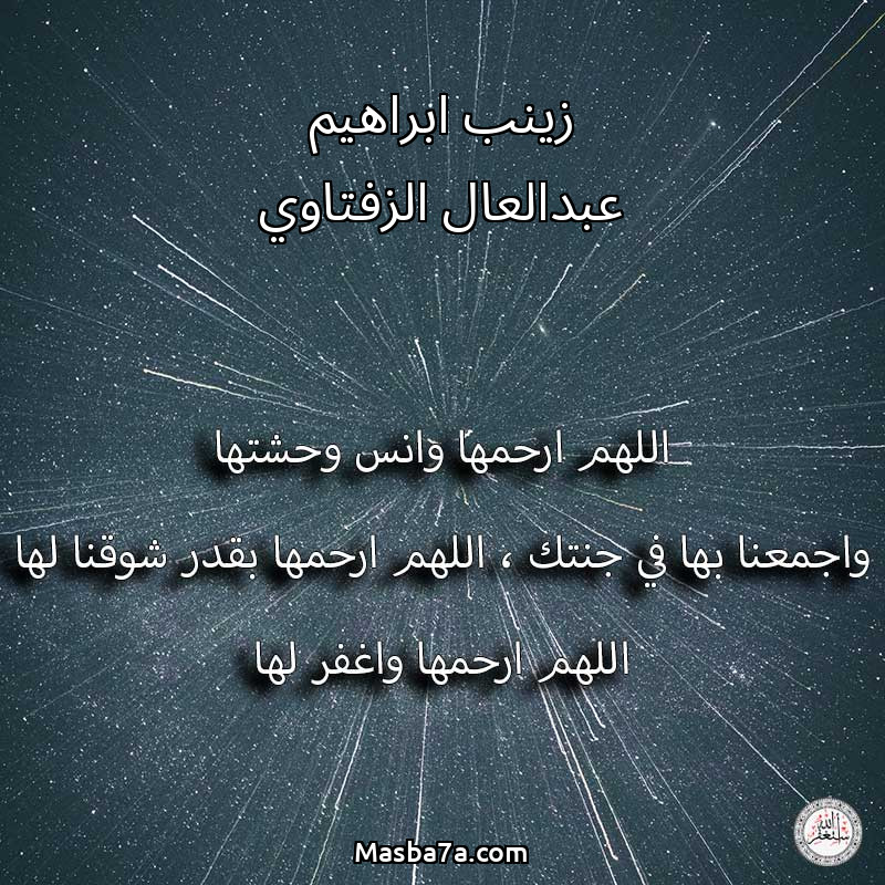 اللهم ارحم ( زينب ابراهيم عبدالعال الزفتاوي ) وانس وحشتها واجمعنا بها في جنتك ، اللهم ارحمها بقدر شوقنا لها اللهم ارحمها واغفر لها .