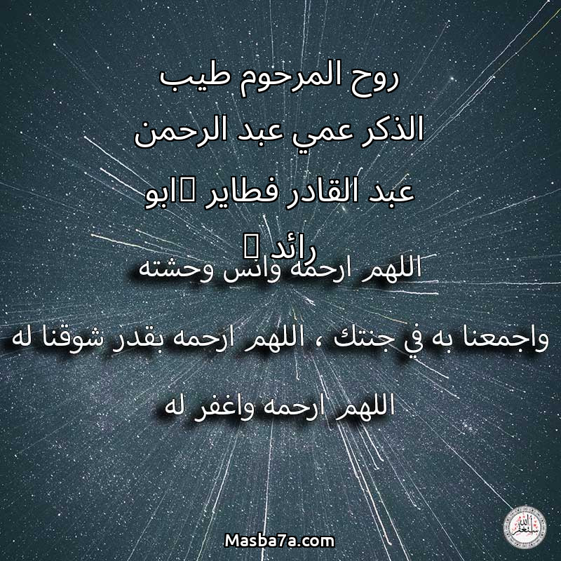 دعاء عن روح المرحوم روح المرحوم طيب الذكر عمي عبد الرحمن عبد القادر فطاير (ابو رائد )