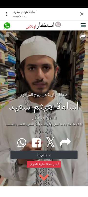 اللهم ارحم ( اسامه هيثم سعيد ) وانس وحشته واجمعنا به في جنتك ، اللهم ارحمه بقدر شوقنا له اللهم ارحمه واغفر له .