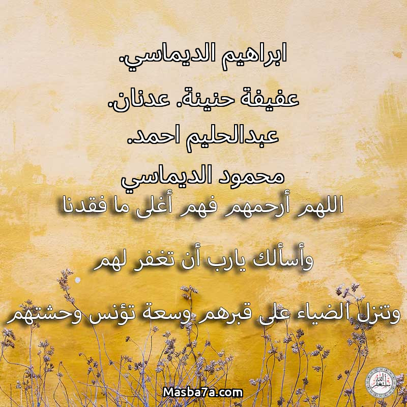 دعاء عن أرواح المرحومين ابراهيم الديماسي. عفيفة حنينة. عدنان. عبدالحليم احمد. محمود الديماسي