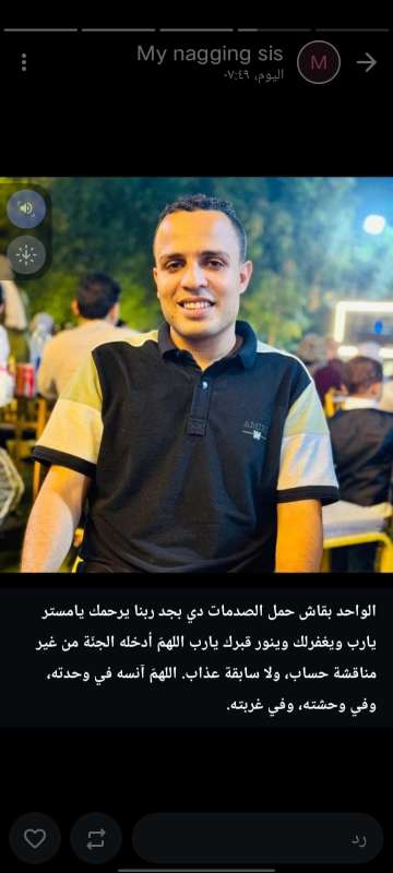 اللهم ارحم ( سامي محمود ) وانس وحشته واجمعنا به في جنتك ، اللهم ارحمه بقدر شوقنا له اللهم ارحمه واغفر له .