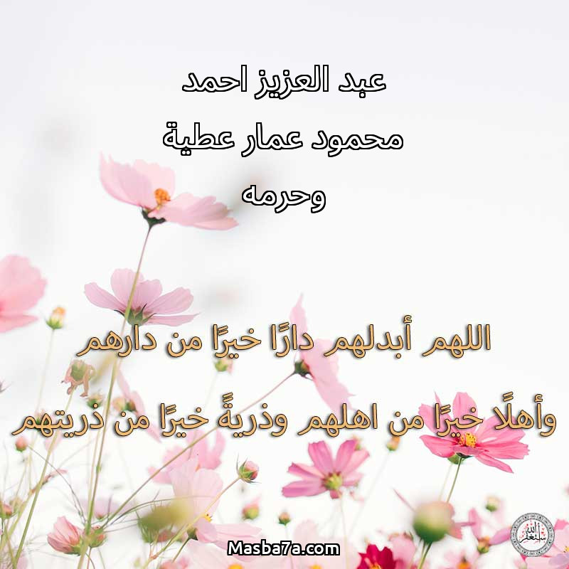 اللهم ارحم ( عبد العزيز احمد محمود عمار عطية وحرمه ) وانس وحشتهم واجمعنا بهم في جنتك ، اللهم ارحمهم بقدر شوقنا لهم اللهم ارحمهم واغفر لهم.