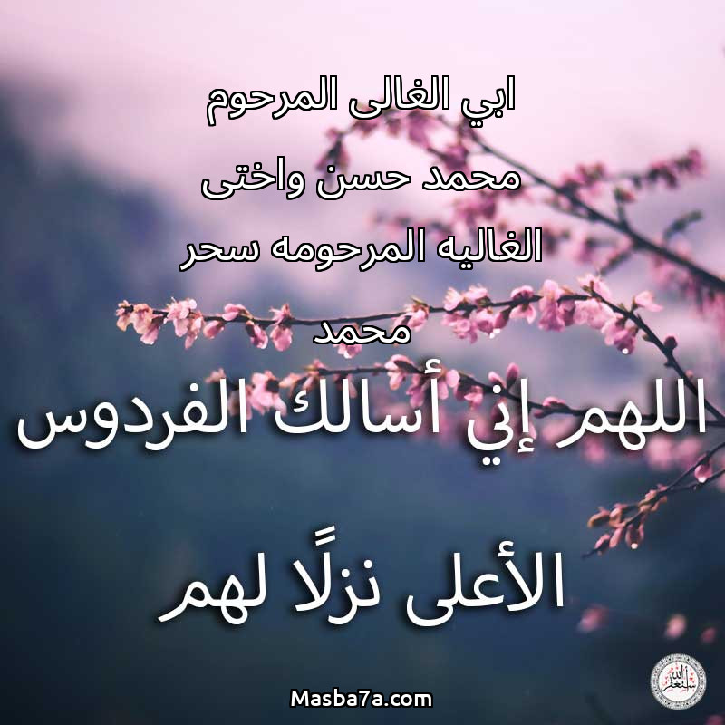 اللهم ارحم ( ابي الغالى المرحوم محمد حسن واختى الغاليه المرحومه سحر محمد ) وانس وحشتهم واجمعنا بهم في جنتك ، اللهم ارحمهم بقدر شوقنا لهم اللهم ارحمهم واغفر لهم.